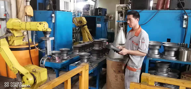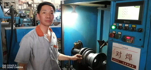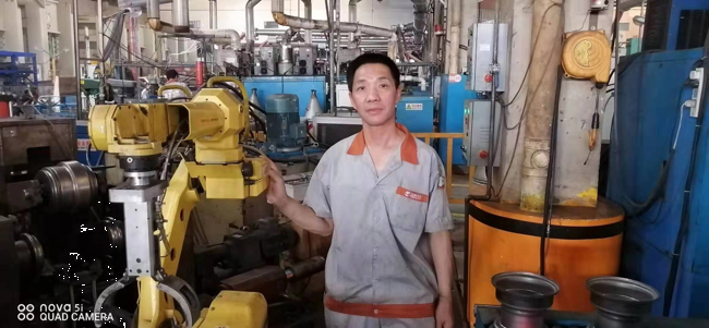 他在默默的堅守自己的崗位,用實際行動完美解釋了“沒有學不會的技術,只有懶惰的人”,他無時不刻在想著學習,學習新的知識努力掌握新的技術,他由簡單的打磨工、滾圈、整型、壓芯子、鉆孔、攻絲、壓槽、試漏,到后來的手動氧弧焊、手動焊保護罩、對焊、焊芯子,再到現在最新的自動機械手臂操作,他通過自己的不懈努力、勤奮好學掌握了13項技術,完美的詮釋了風馳的這種拼搏奮進、學無止境的匠人精神。