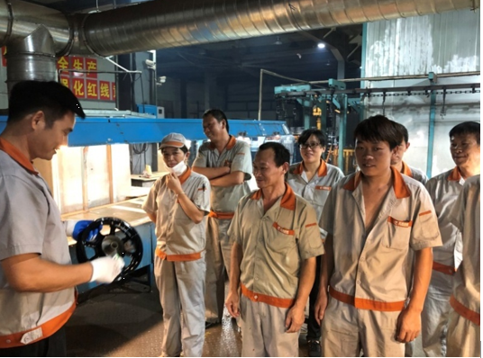 2019年9月17日,針對前期本田客戶反饋特黑GJBA軸套與制動轂周邊出現(xiàn)白色異物的情況,生產(chǎn)部特組織對GJBA擦修工序員工展開擦銹技能培訓(xùn),此次培訓(xùn)由涂裝車間主任朱新華主講,分別結(jié)合實際案例、作業(yè)指導(dǎo)書、現(xiàn)場操作等形式展開培訓(xùn),以求達到更好培訓(xùn)效果。