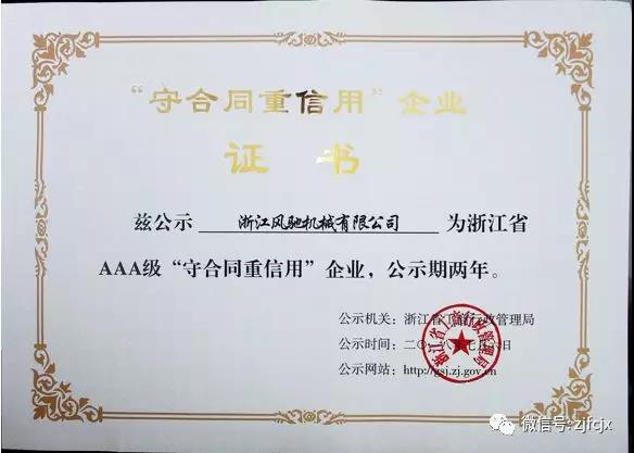 2018年7月榮獲浙江省工商行政管理局頒發(fā)的浙江省AAA級(jí)“守合同重信用”