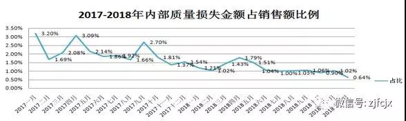 內(nèi)部質(zhì)量損失占銷(xiāo)售額比例, 從2年統(tǒng)計(jì)數(shù)據(jù)看,呈現(xiàn)持續(xù)的下降趨勢(shì)。